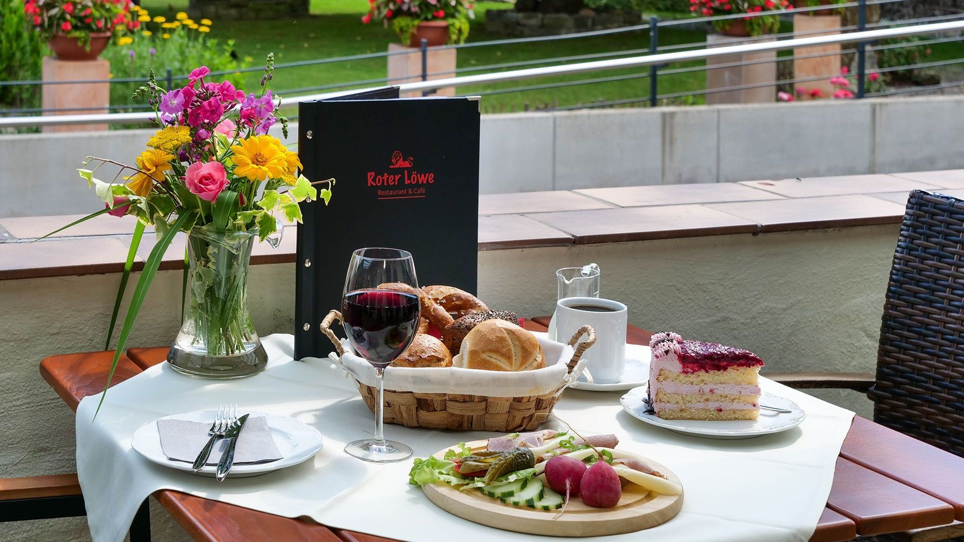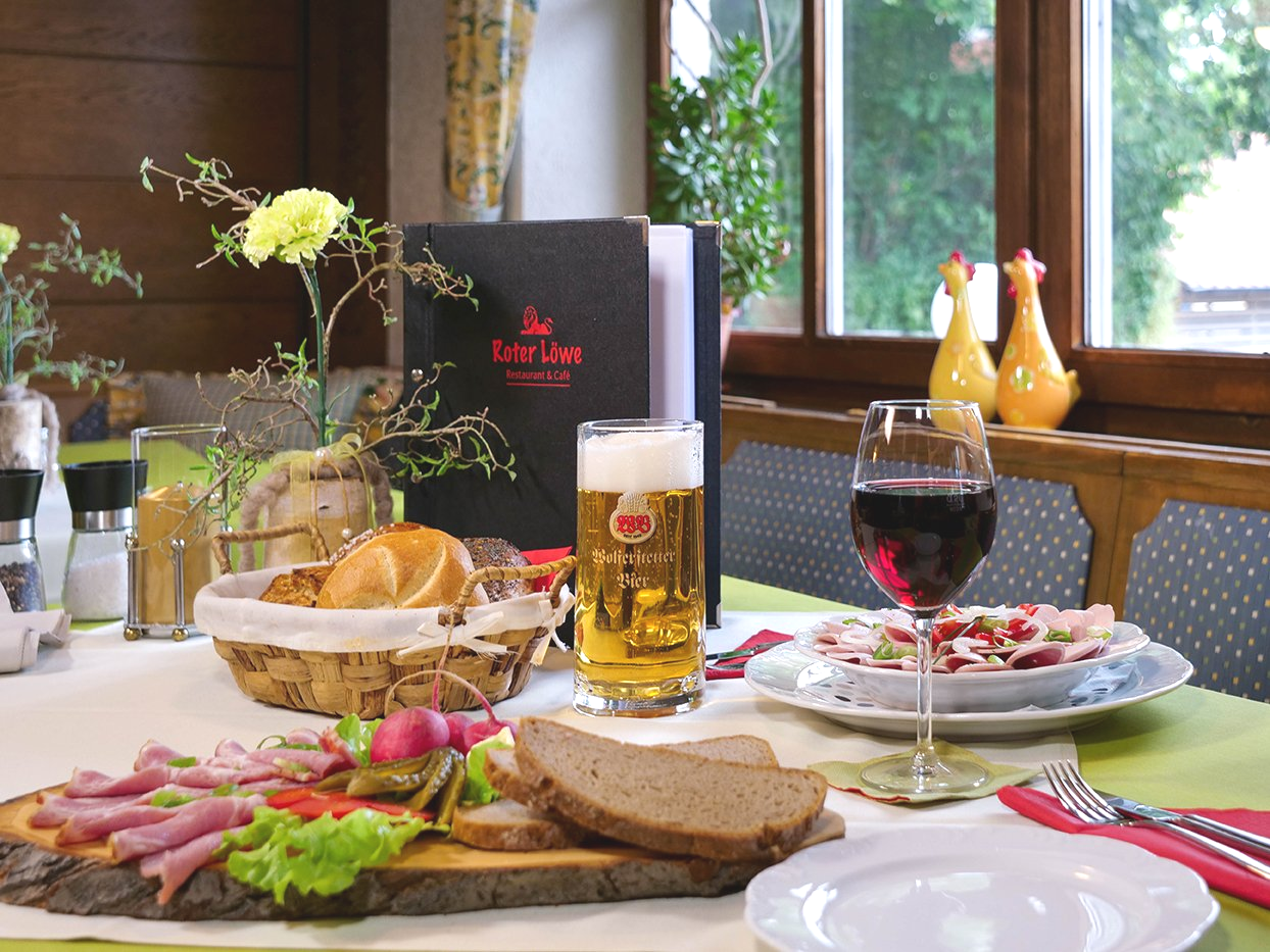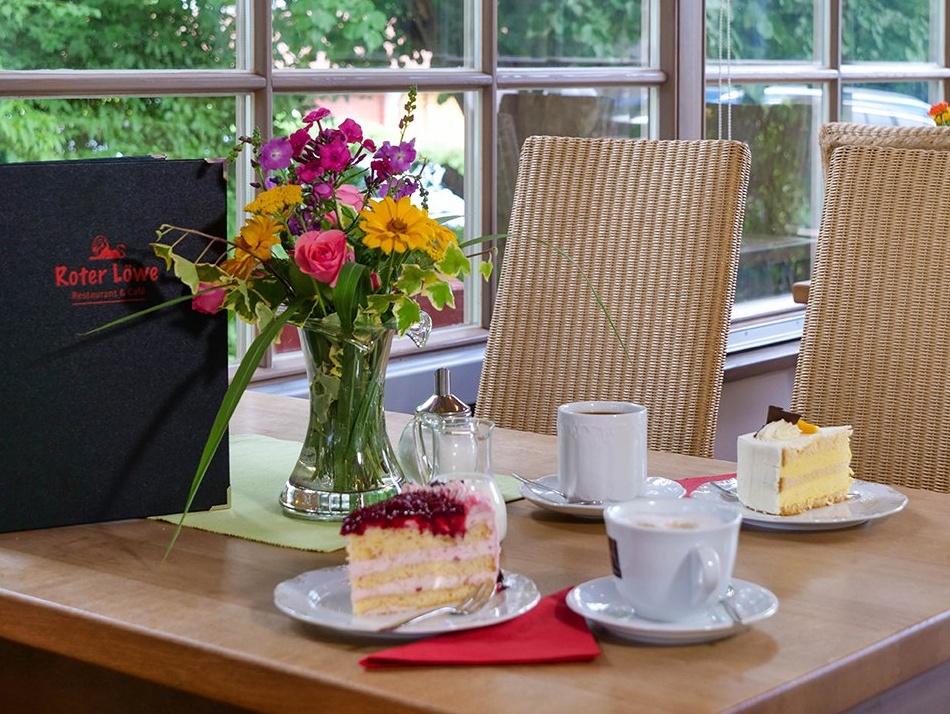 Stellen Sie sich vor, Sie sitzen gerade auf der Terrasse vom Restaurant & Café ›Roter Löwe‹, während Sie die warmen Sonnenstrahlen auf Ihrer Haut spüren. Der Garten um Sie herum ist belebt, mit dem Summen von Bienen und dem fröhlichen Zwitschern der Vögel. Die Atmosphäre ist entspannt und lädt dazu ein, einfach mal abzuschalten und den Alltagsstress für einen Moment zu vergessen.